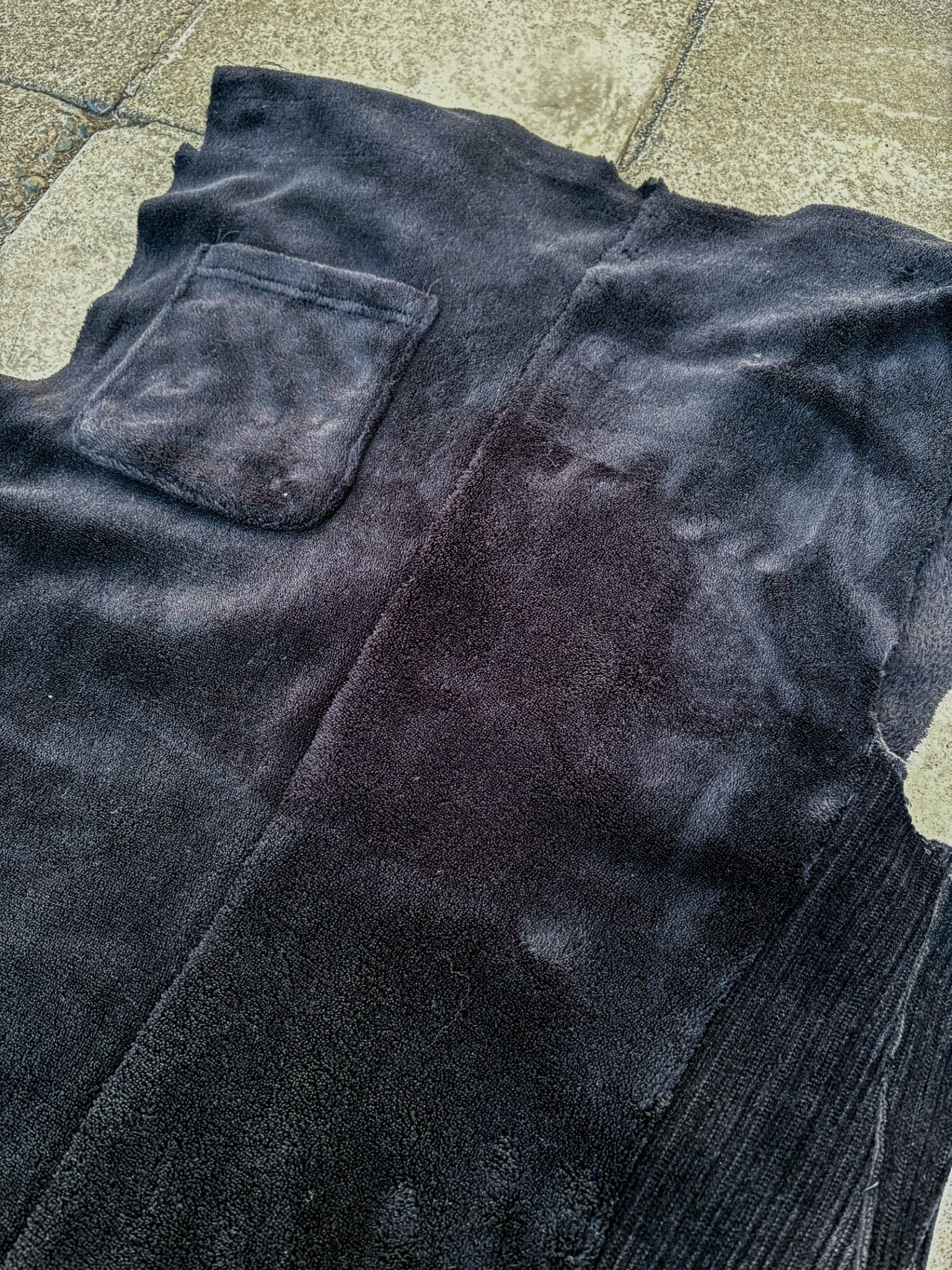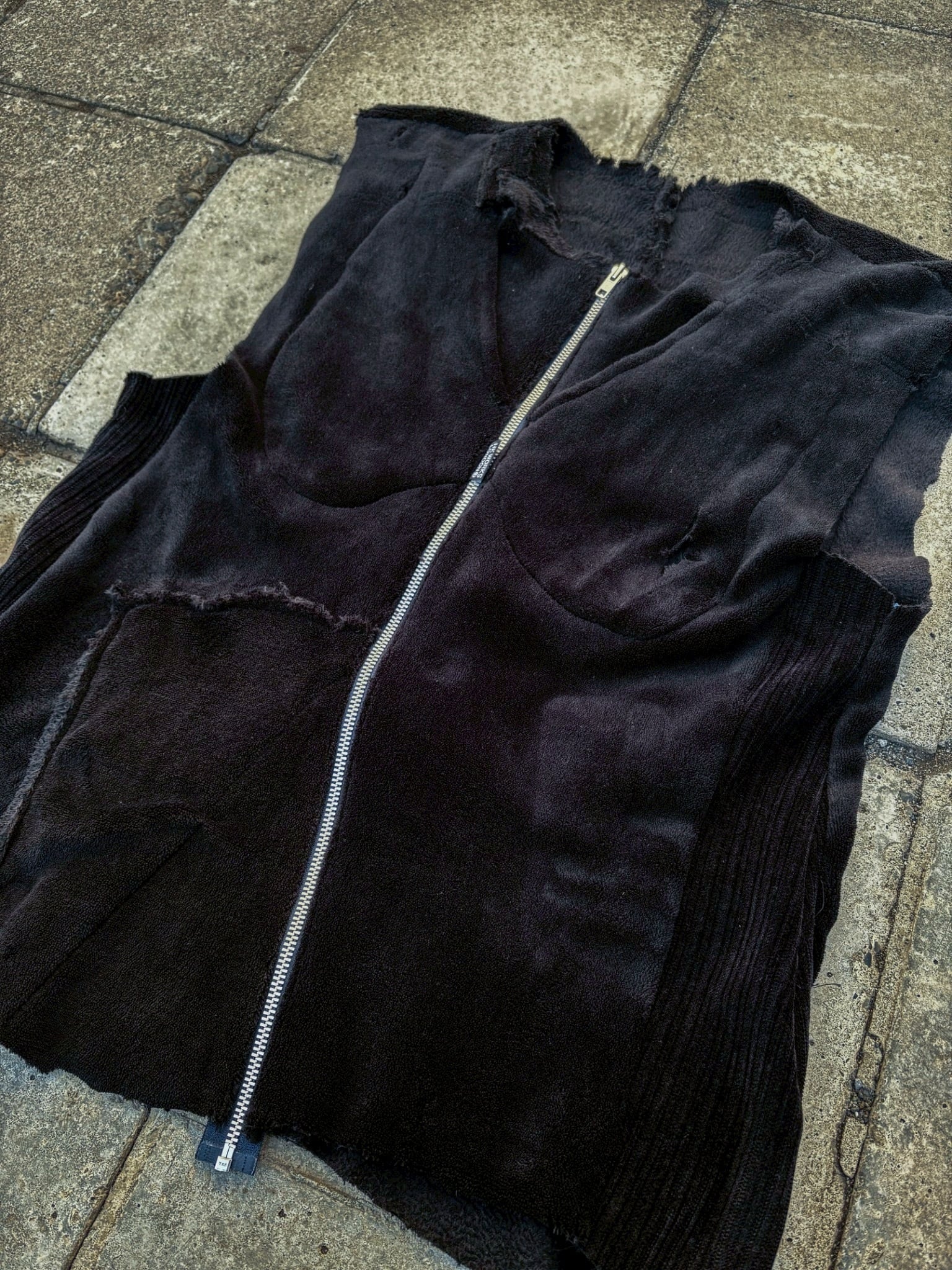 フリースパンツ1本を解体し、その生地のみを使って再構築したノースリーブベスト。